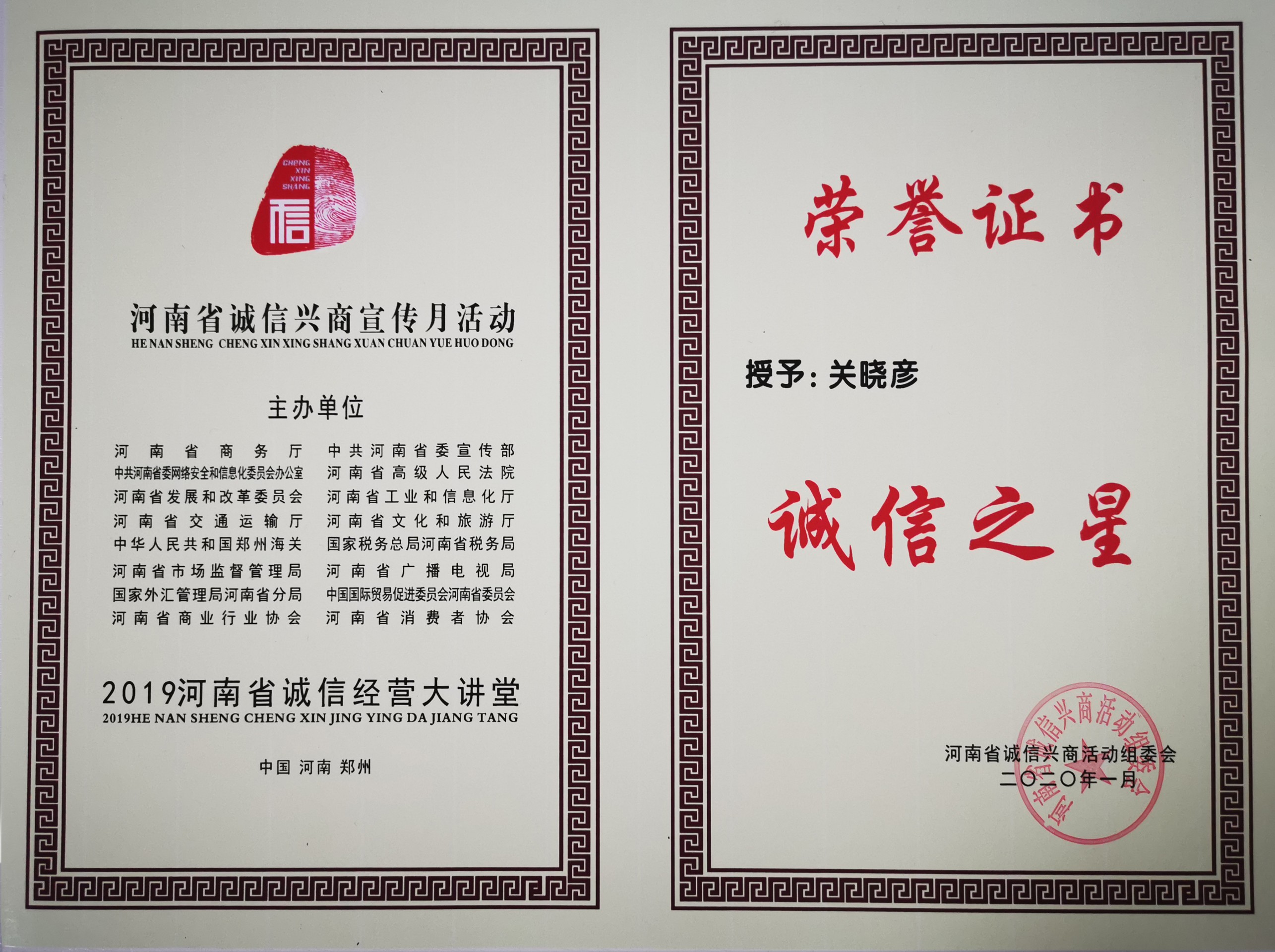 駐馬店市優(yōu)秀企業(yè)家榮譽(yù)稱號(hào)